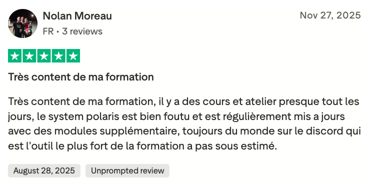 "J'ai tout appris de zéro grâce à Polaris le premier mois, j'ai généré 1 500 euros, le deuxième mois, j'ai dû faire 2 000 euros, quelque chose comme ça"